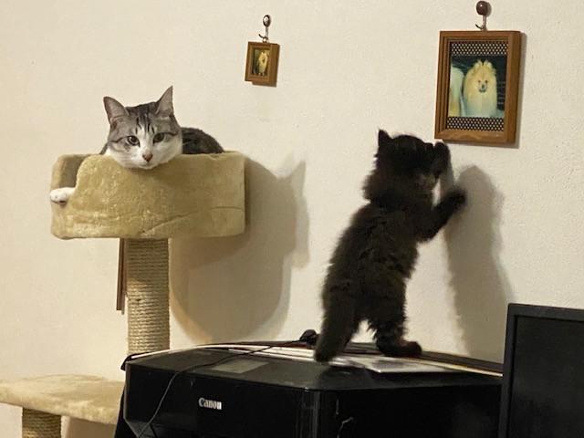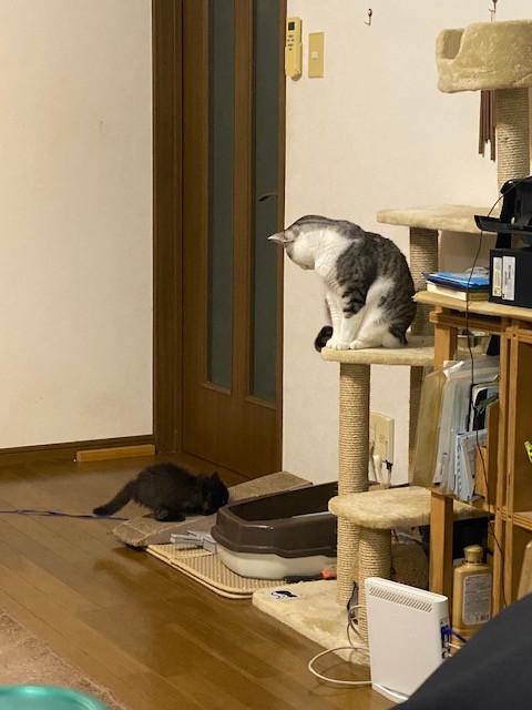 姉貴猫の監視下、悪事に勤しむチビ猫。