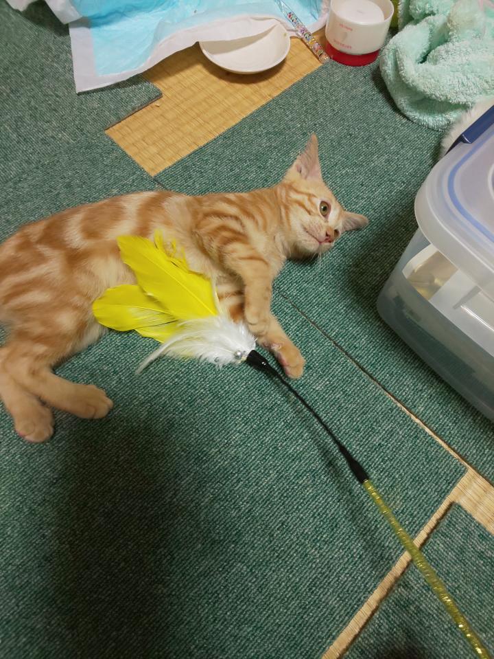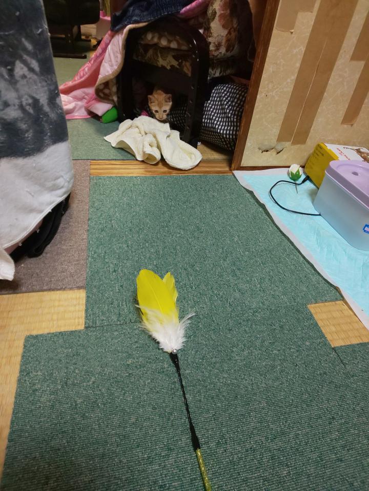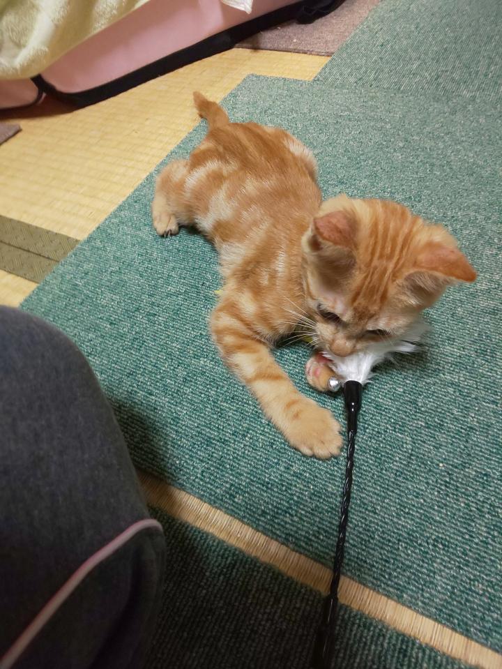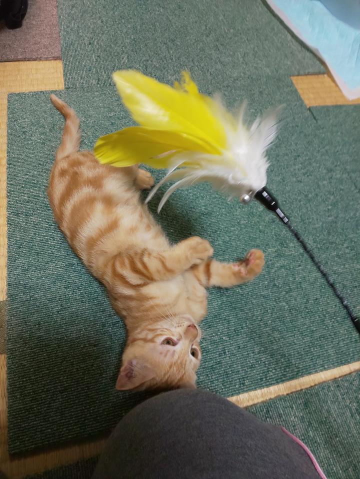 気を付けないと羽の猫じゃらしをとられて