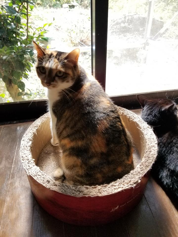 大ケガ負っていたので保護して、病院行ったらエイズキャリアだと分かり…とりあえず他の猫達が傷口を舐めないように2ヶ月くらい隔離部屋で過ごしていたゆず🐱
