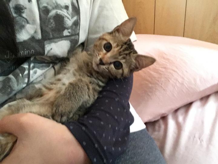 保護当初は1番臆病でいつも部屋の隅でシャーシャー威嚇していましたが、今では膝の上でひっくり返してもされるがまま😂