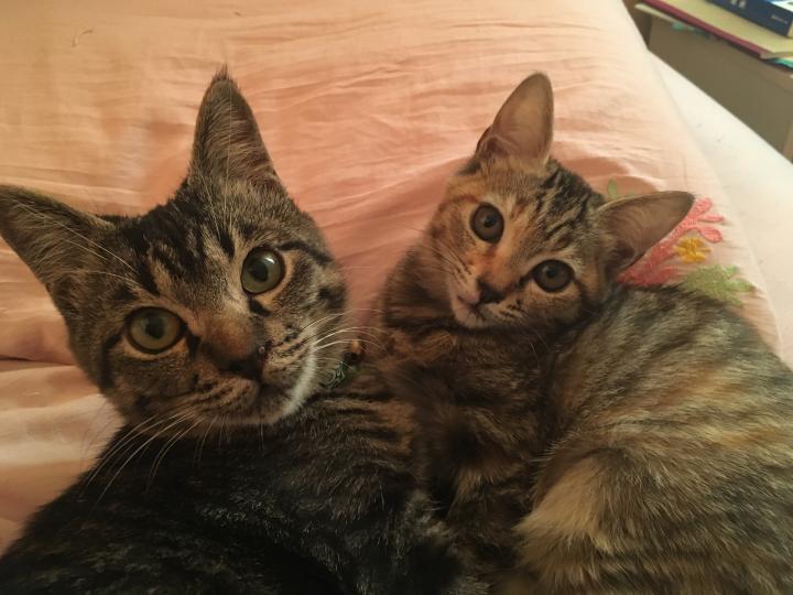 ほかの先住猫と毎日大運動会をするほど元気いっぱい。やられたらやり返す、でも仲良く寄り添って寝るときも……