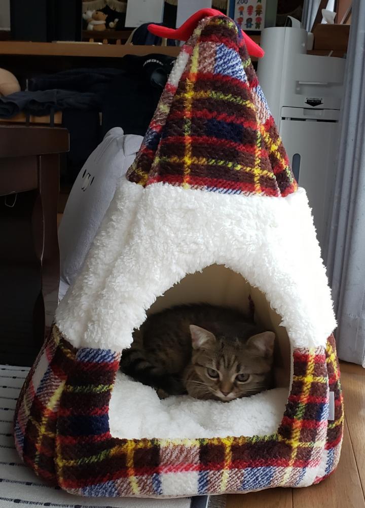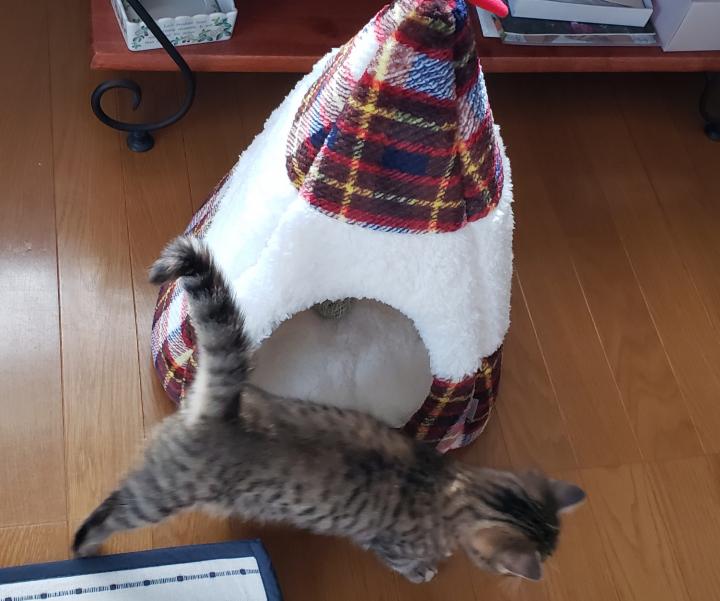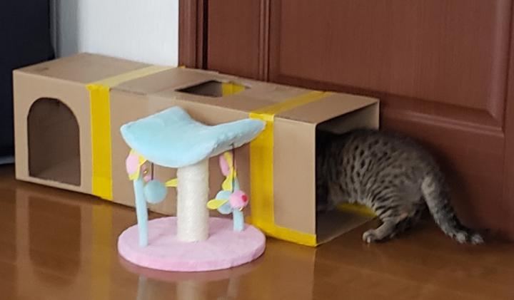 Amazonのダンボールの手作りトンネルも入ってくれました。