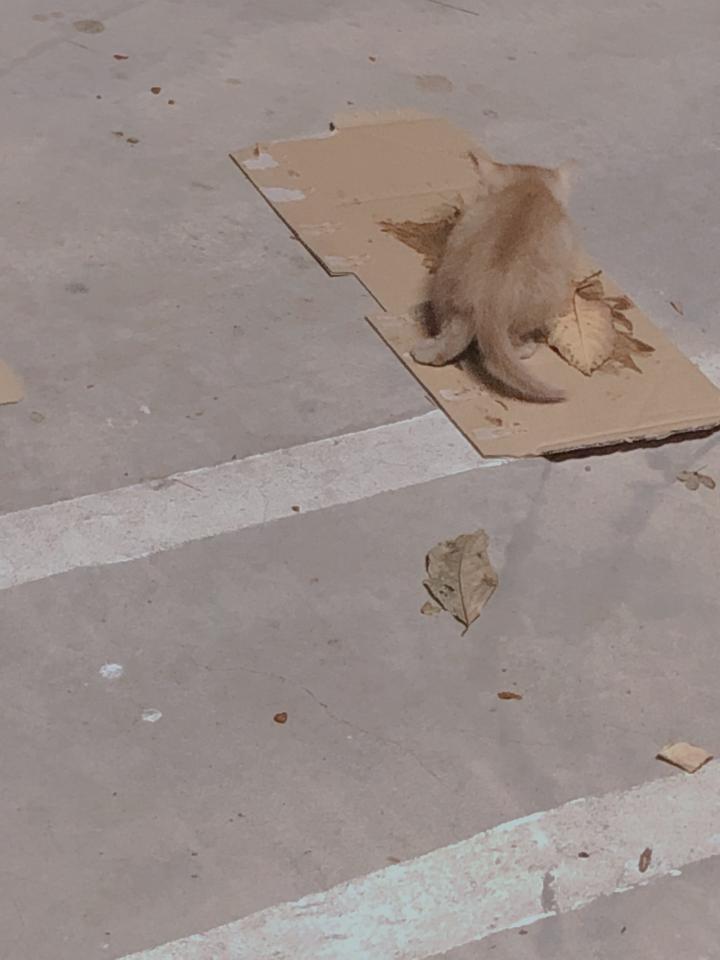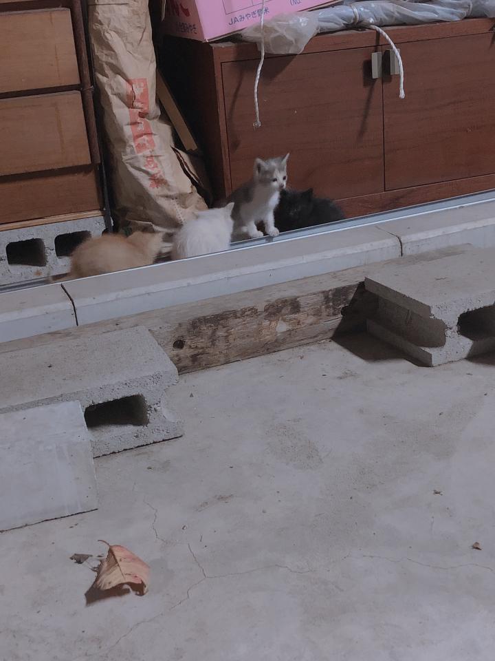 ママ猫はご飯をすぐに隠して、子供たちは何とか潜って食べる訓練中のようです😹