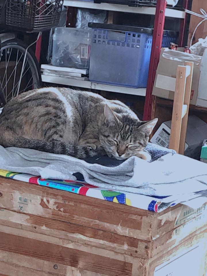 昨日はママ猫が取ってきたモグラが放置されてました💦ママ猫に許可をもらってモグラを避けたら子猫が寝てくれたみたいです😊
