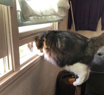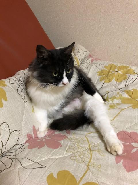 室内だけで過ごすようになったばかりの頃のナナ。タヌキみたいになってきてます😅