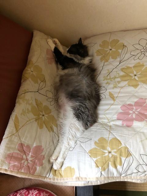 伸びきって寝てるナナ。ちょっとダイエットが必要かも💦