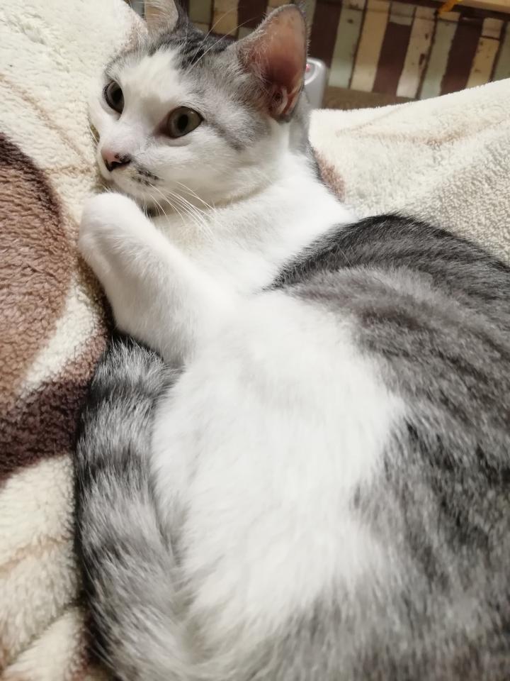 朝、甘えるとうくんを見ずにヨシヨシしようとして