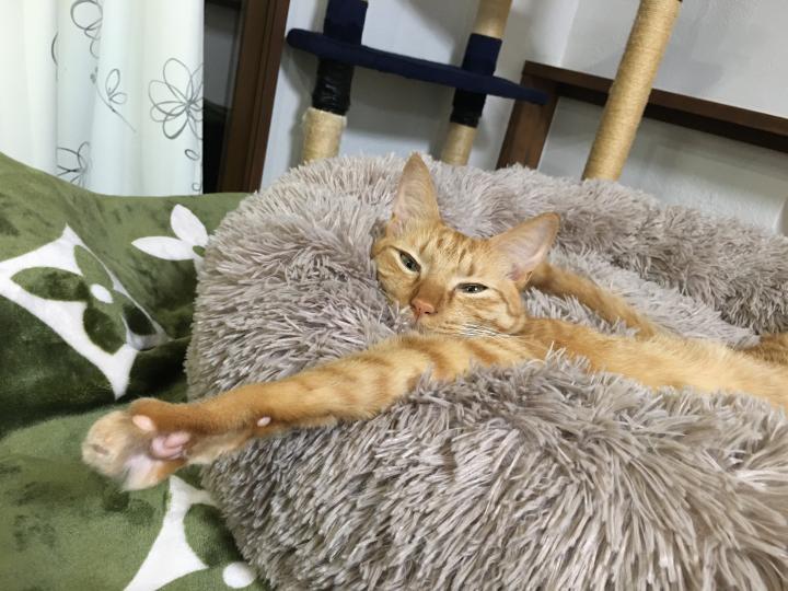 毎晩ココで1人 ゆったり寝るのがブームらしく お気に入り😸