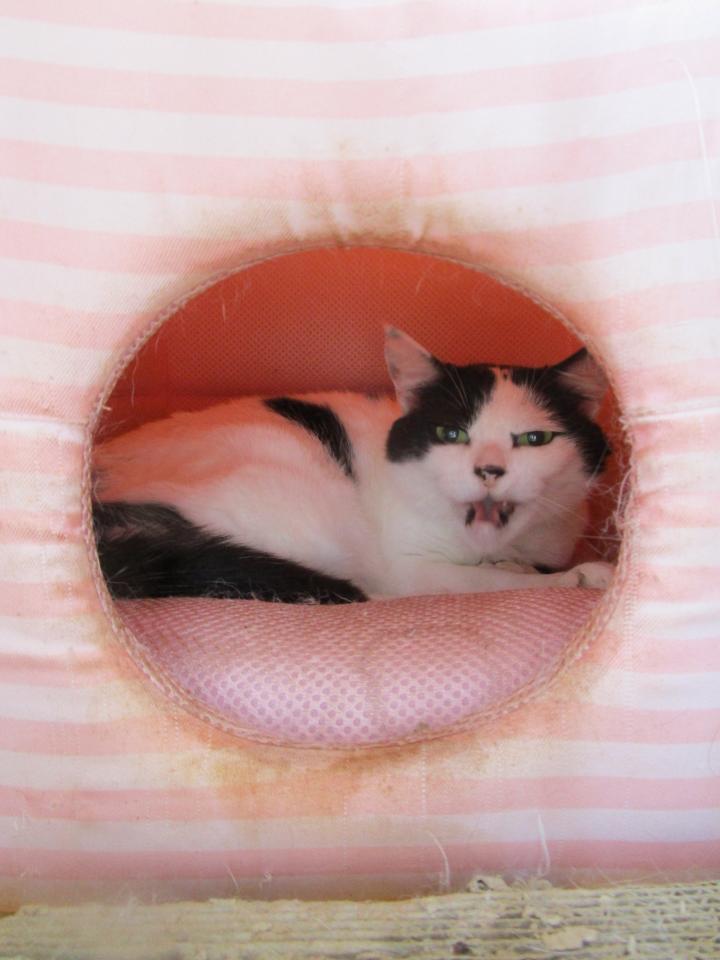 しかも、ゴハンやトイレ以外、広いケージの中のBOX型の猫ベッドにずっとお籠り。