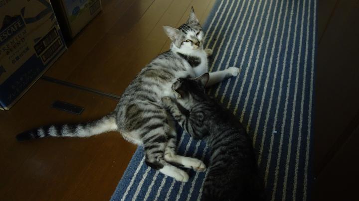 するとユウナは大きくなった今でも、お母さん猫のオッパイを吸って甘えています。(^^)