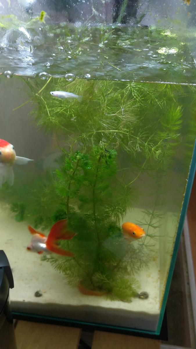 金魚でも口の小さい子たちなんで仲良く泳いでいます。