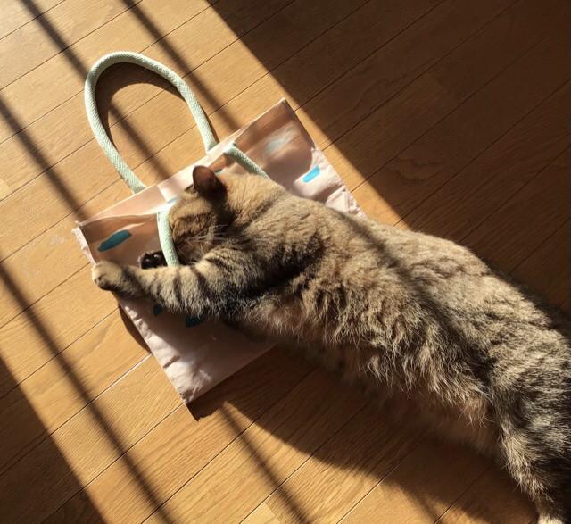 もちろん、我が家でもたぬきねこ様のために毛布を用意したりしていますが、朝の寒い時間にたぬきねこが使うのが「生協のエコバッグ」。