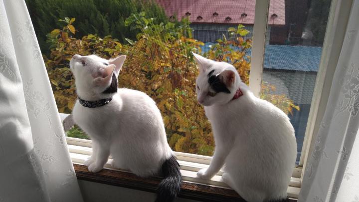 秋の色彩に白い毛が際立つ今日この頃🍂