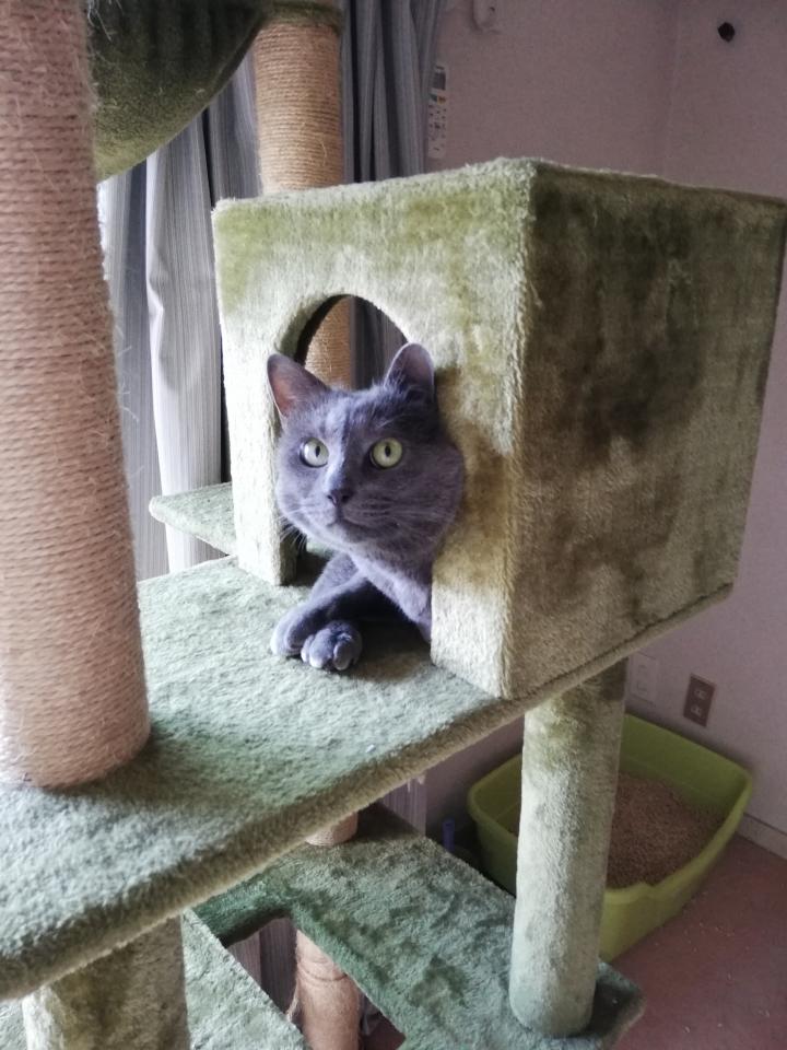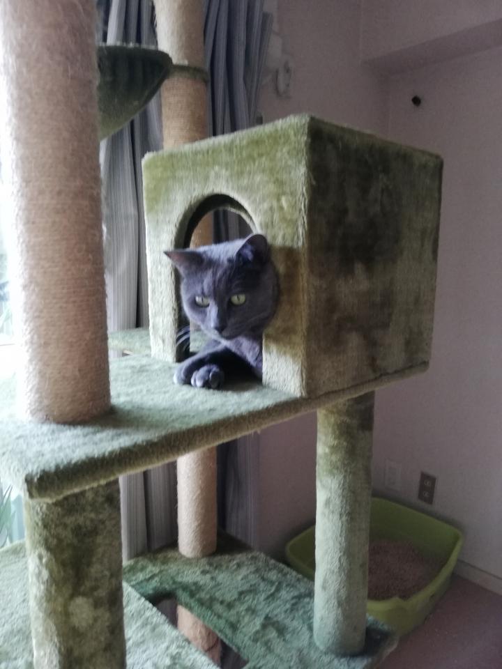 ふとみたら、キャットタワーの箱部分に入ってる!しかもよくみたら腕を組んで!なんとも偉そう…。そろそろ飽きたようだからキャットタワー片付けちゃおうかな~と思ってたのに、またブームが来てしまったようで残念無念。居間にあるとでかいんだよなあ~キャットタワー…もう一回り小さいのを買っていれば…。後悔先に立たずです。つい買うならよりいいのを!で選んでしまうんですなあ~。ハンモックだってオプションで買ってしまったしね…私よりお金をかけてもらってるボンボンなのです。、ちなみにわかってしまうかもしれませんが猫用品はやたら緑色を選んでしまいます。、何でだろう?