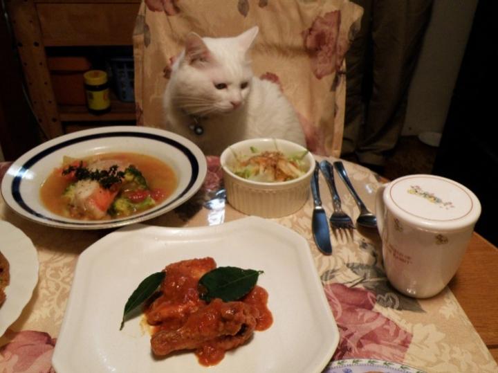 結局ニャンズは、シフォンケーキをChiroが貰い、(今日の料理は玉葱が入っているんです。)
