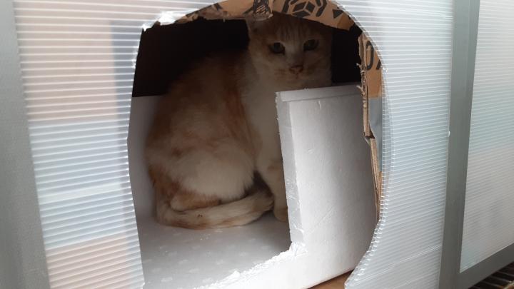 冬用の発泡スチロールハウスをシーフード君が気に入ってしまい、そこで時々過ごすように。
