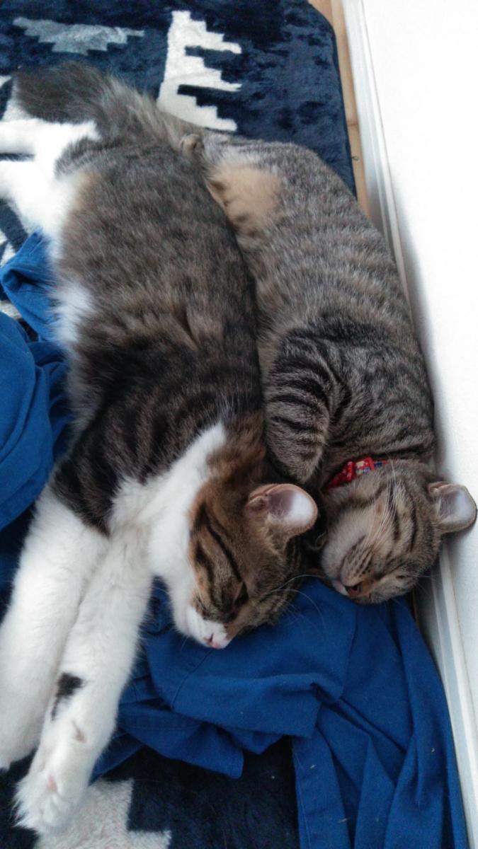 ここあくんがいました✨ 男の子女の子の兄弟を引き取り育てています♪ 男の子は甘えん坊で、猫はお腹触るの嫌がるなんて聞いたことあるけど、二人ともお腹触ってほしそうにして、撫でれば気持ち良さそうにして...