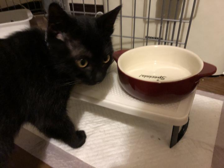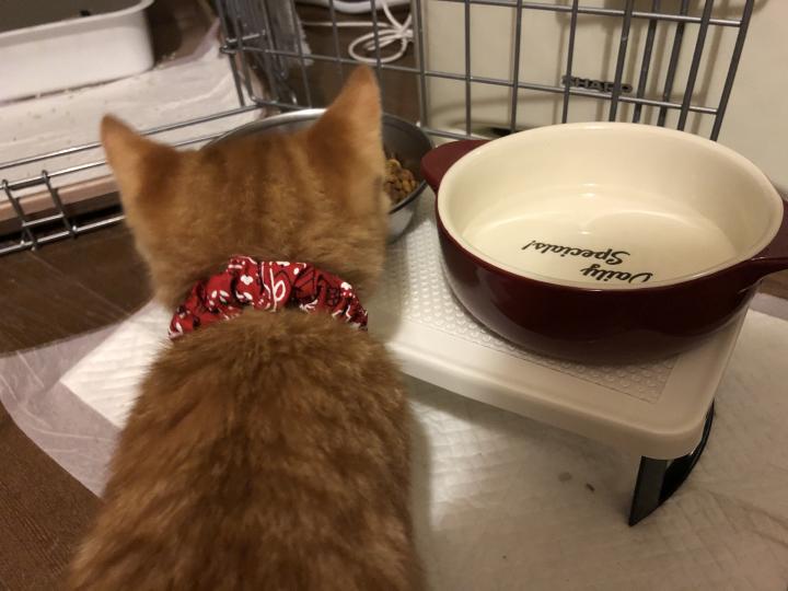設置してみましたが、まだチビニャンズには高かったようで💦次男は台に上がってムシャムシャしてました。