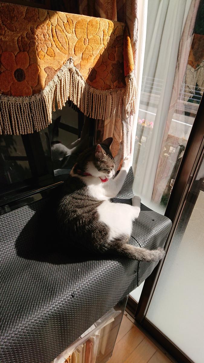 2日続けてお留守番を言いつけられたリンちゃん。朝ご飯でケージにいれられて不安そうに鳴いていたけど、出してもらって安心して日向ぼっこで暖まるリンちゃんでした。