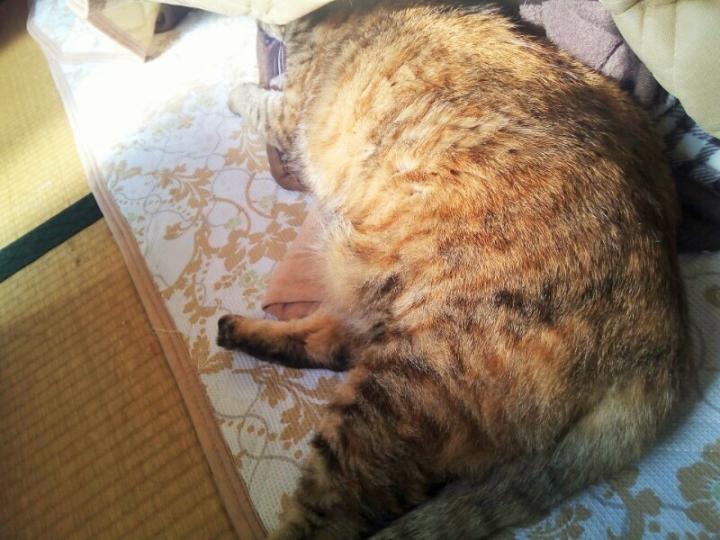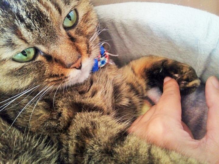 マロコに肉球もませて貰った。いやぁ猫飼いの特権ですな♪プニプニ♪