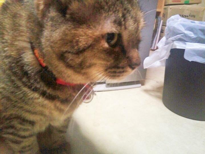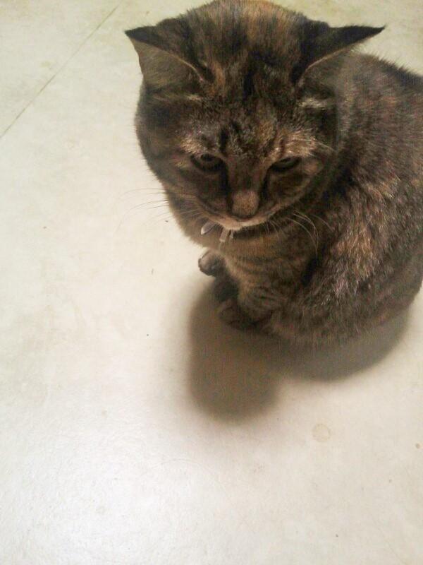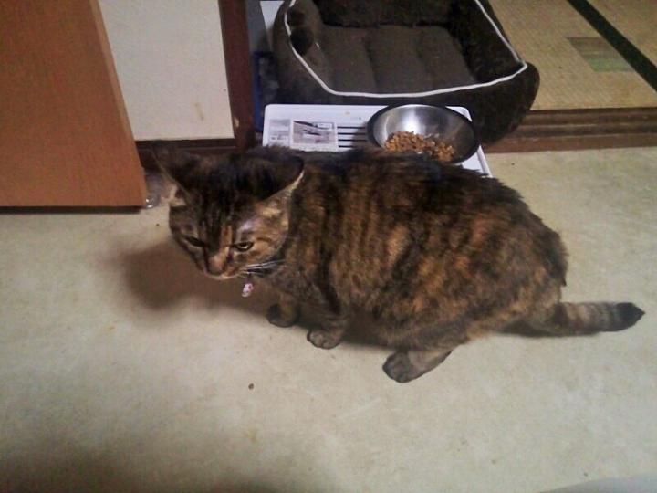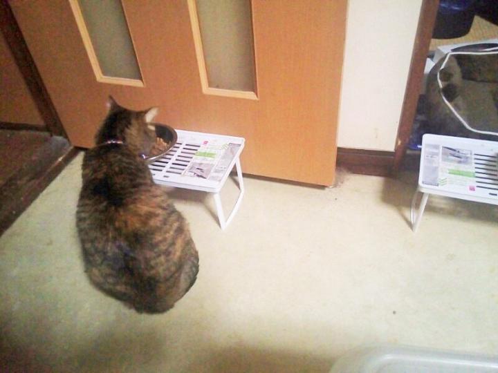 しれっと食べた後に高い棚位置からメロをこんな顔で見てました。