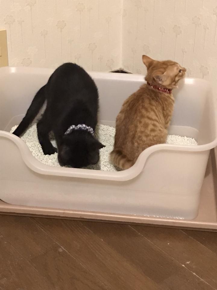 大きいし広いおかげでトイレの中でもチビニャンズは遊び始めました💦