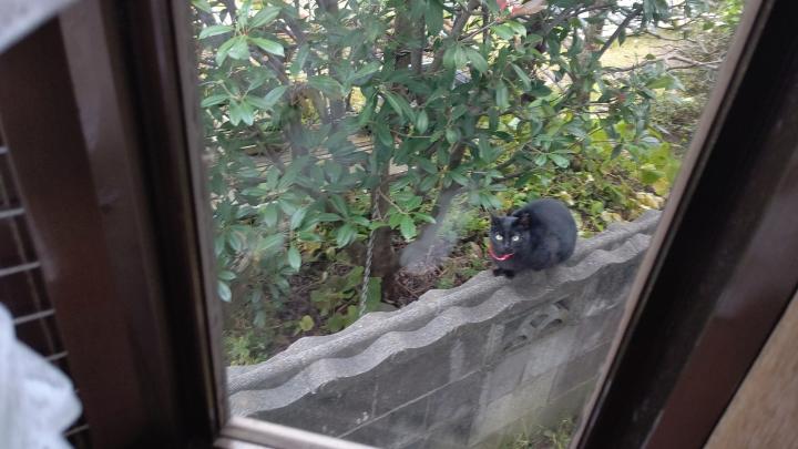 朝、起きると大体、桃太郎が出窓で待ち伏せ。