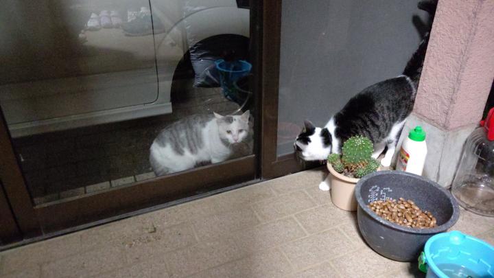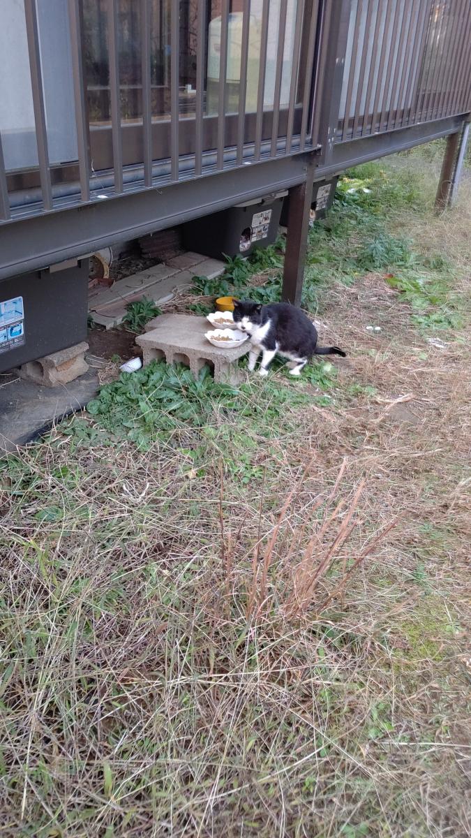 小学生の長女を見送ってから、お母にゃんのエサやり…だけど、今日はシラタマ爺しかいない。