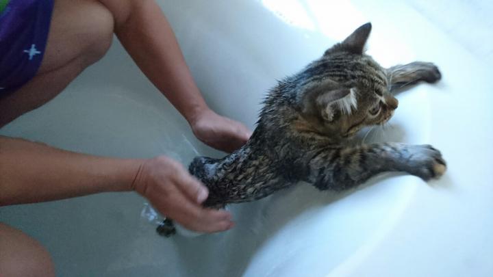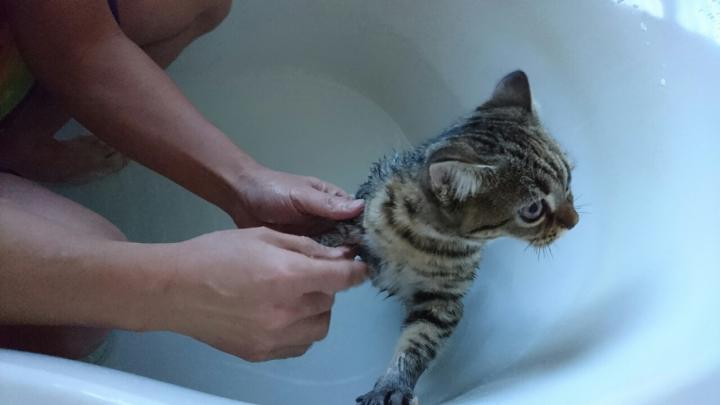 ドライヤーは音が怖くて、もっとにゃーにゃー泣きました。