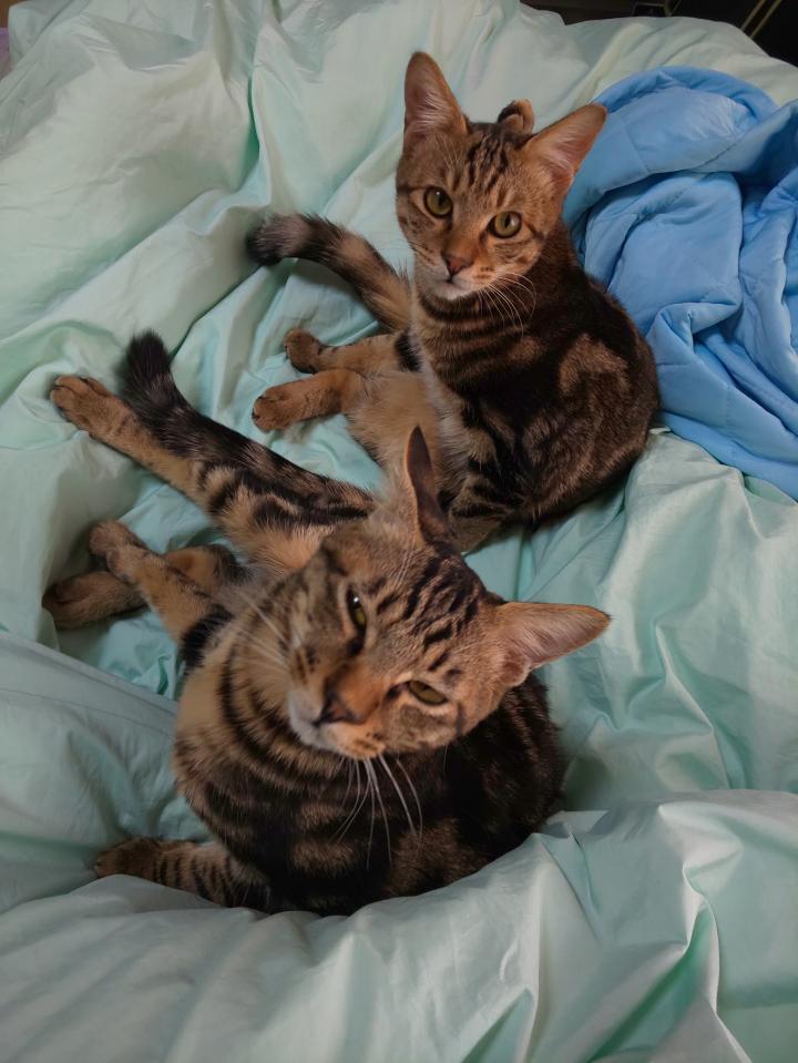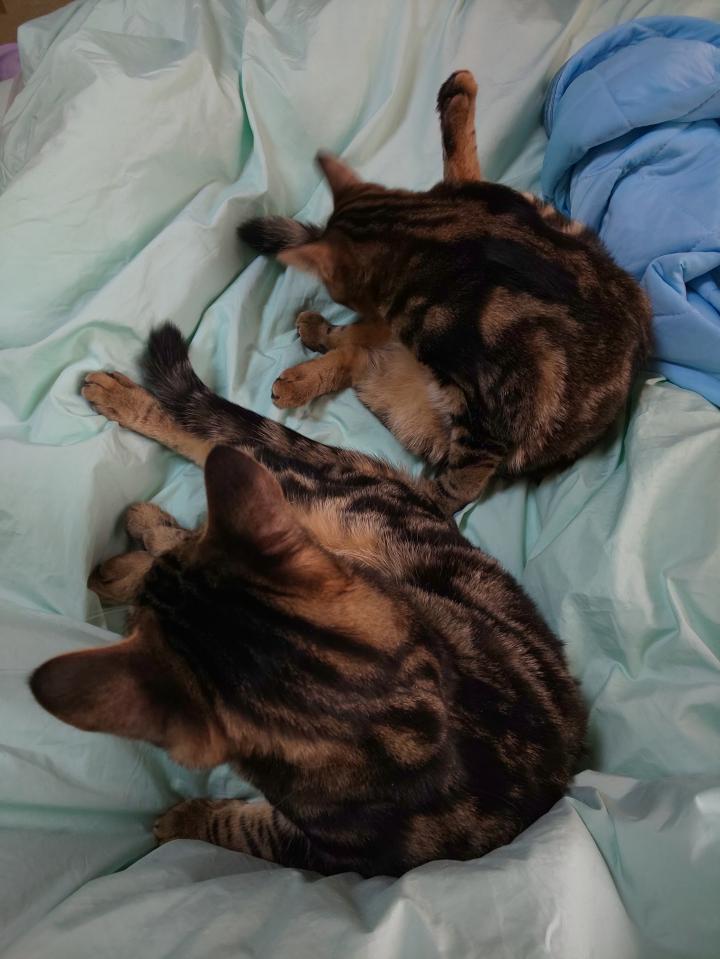 布団の上にクロム君チャム君が乗ってきた