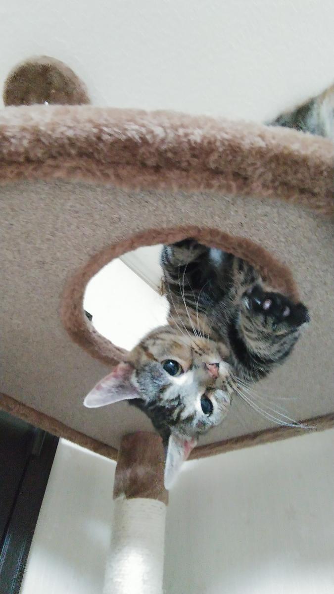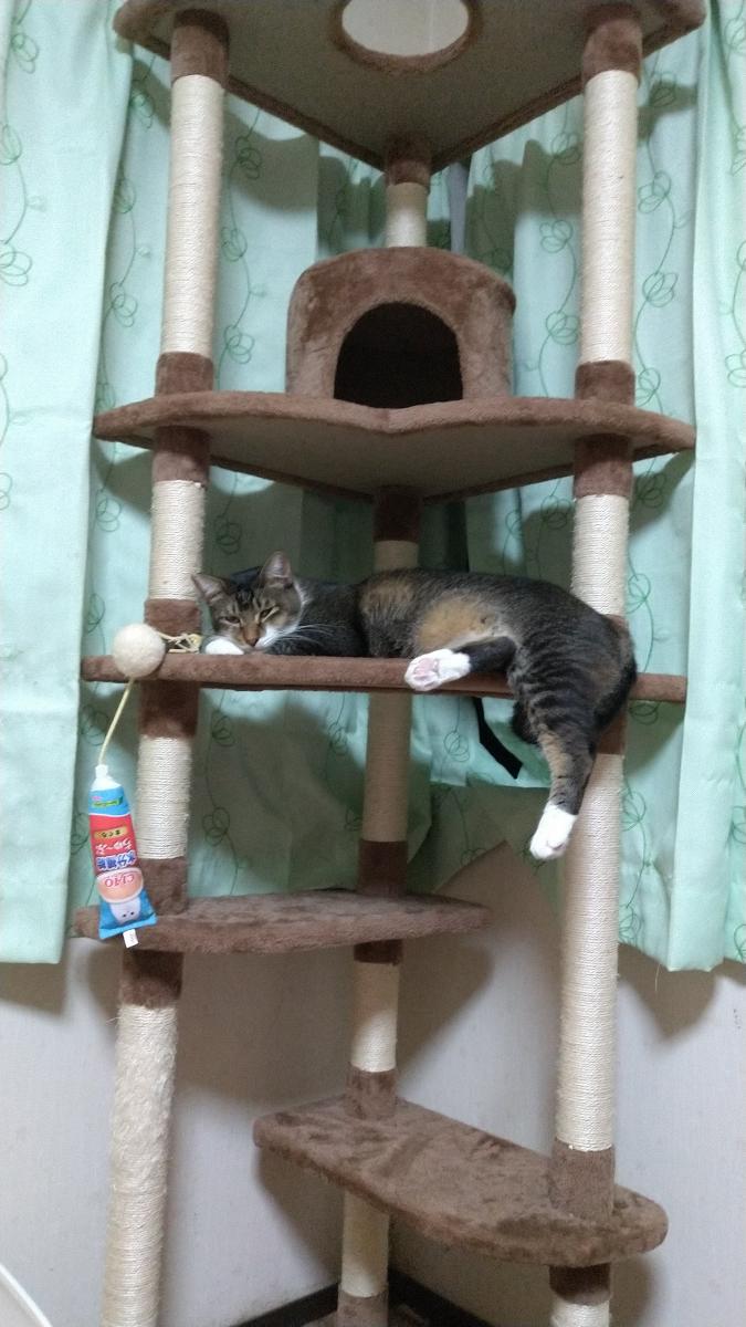 カーテンがしてありますが、朝になると、キャットタワーからお外が見えるように✨