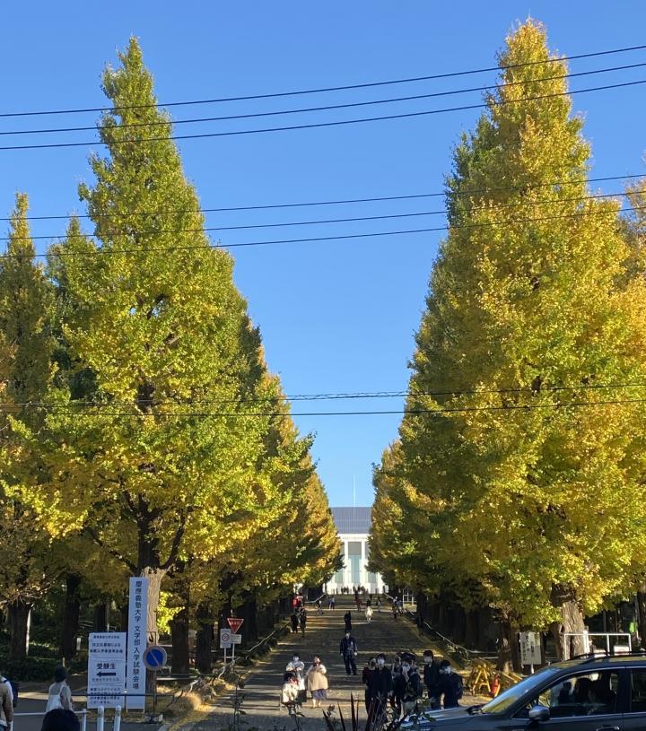 帰りがけ 最寄りの駅を出ると 慶應義塾キャンパスの銀杏並木が綺麗でした