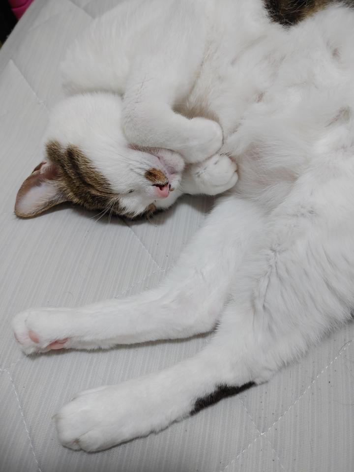 保護されたときはガリガリで心配でしたが、今はぷくぷく肥えてきています…ご飯もダイエット用にしてるんだけどな…。