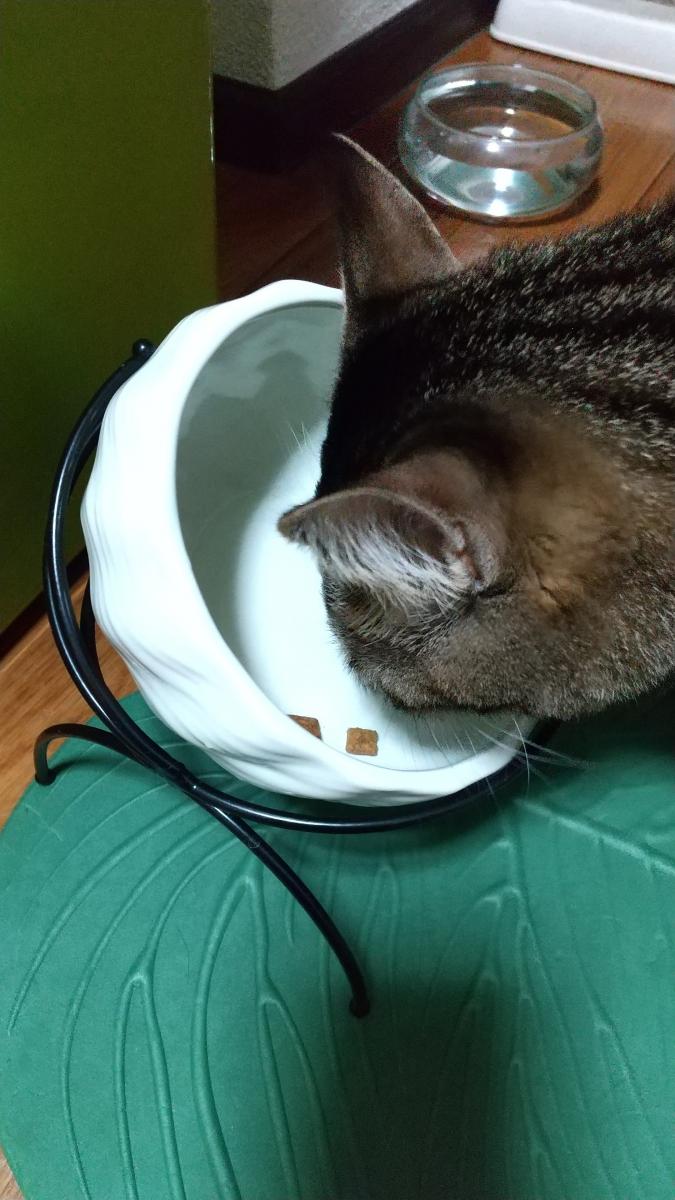 ちびた、今まで高さ4センチの台を使って食べてたんですが、最近食べる前に体勢を整えて食事する感じでした