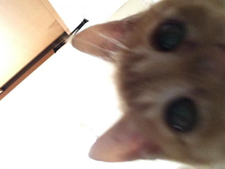 茶白くんはどんどんアクティブになって、我が物顔で部屋を走り回ってます😂ちょっとビビりだけど好奇心の塊!床に置いたスマホを覗き込んでいたので激写しました📸