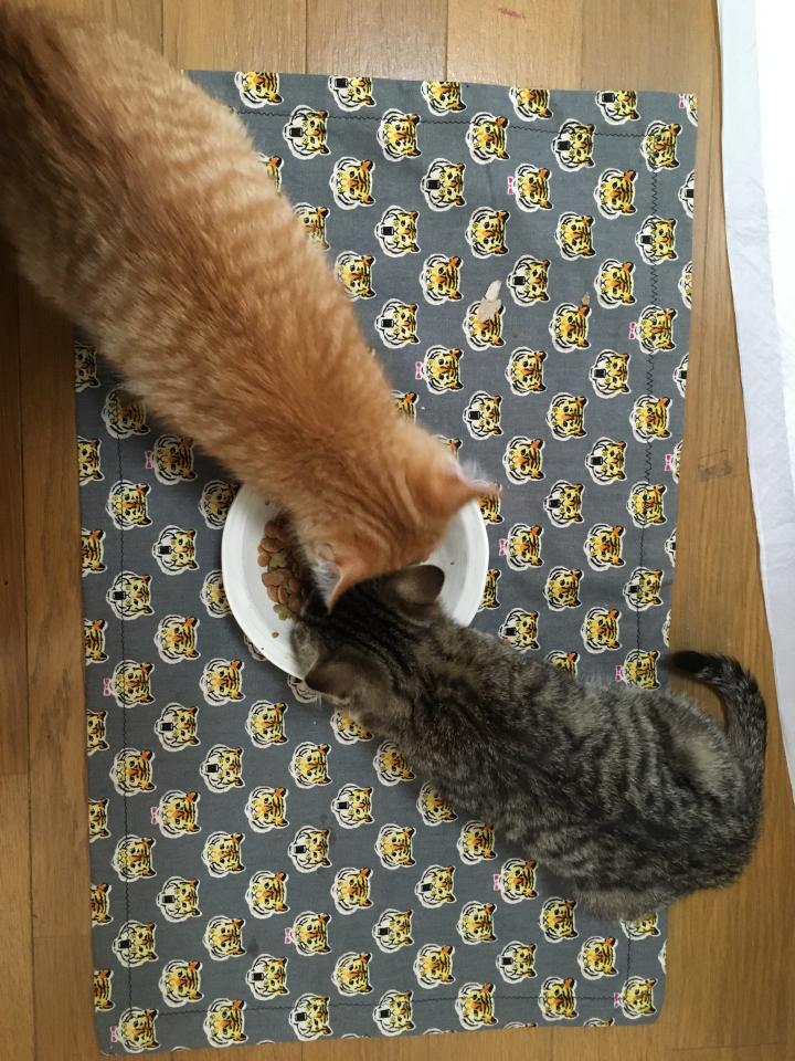 (ご飯を食べる時だけは静かなので、他猫と過ごす訓練として一緒にしています)