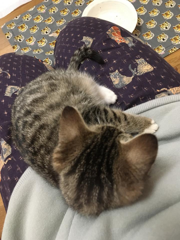 キジシロちゃんは大人しいタイプなのか、膝の上に乗せても嫌がらず、ゴロゴロぺろぺろしてくれる可愛い子です😉
