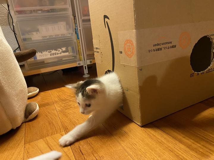 さらに、ちゅらのために娘がダンボール箱でトンネルを作りました。