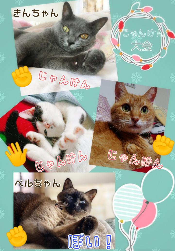 次に、ベル姫さんのネコ写投稿で、ベルちゃんのじゃんけんの写真があり、コメントで、じゃんけん大会とカラオケ大会しましょう‼️とコメントしたところ、快諾でしたので、開催しちゃいました😆