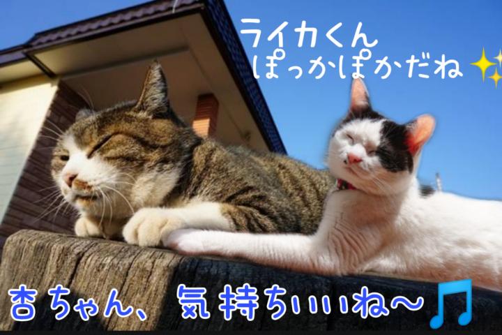 ライカ君は、時々このピックアップで見かけるのですが、青空の下気持ち良さそうな写真で、杏も隣で寝たいな~という願望でコラボした写真がこれです。