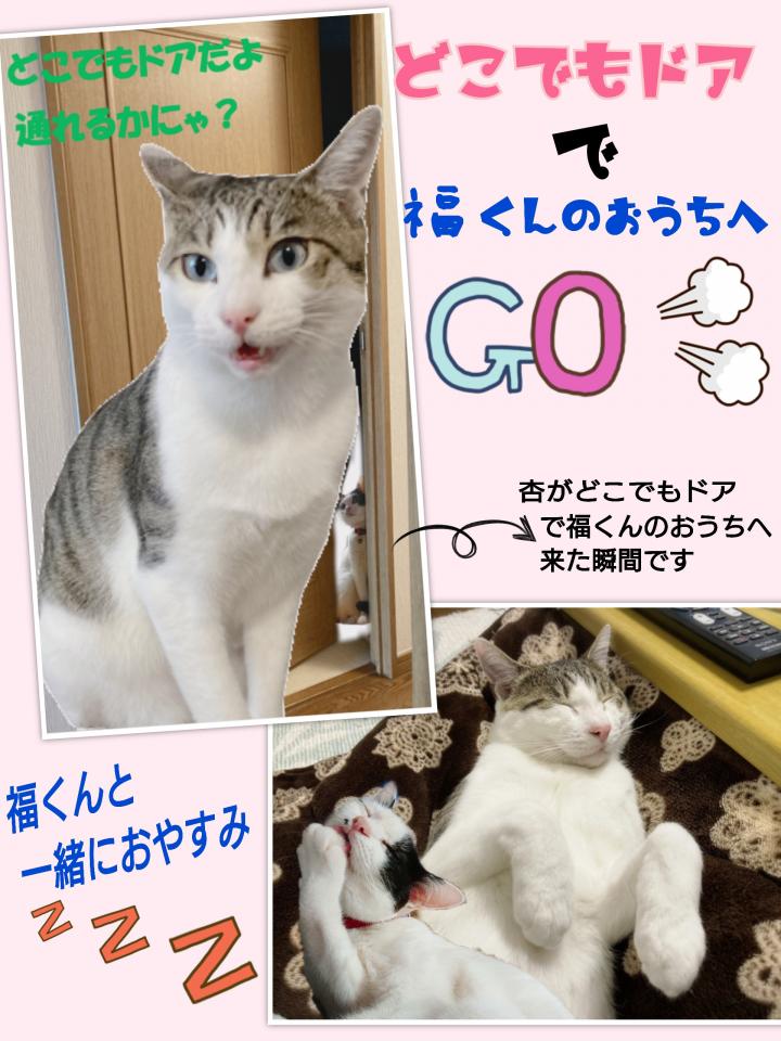 杏はどこでもドアで、福くんと一緒に寛ぎ、寝ることができました🤗