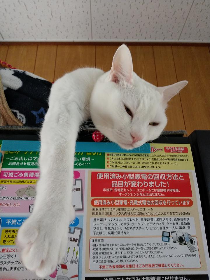 ヒーター前に居た餅子嬢に重なるように、どっかと座る竹輪様
