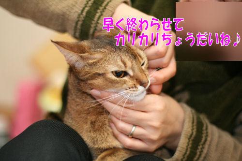 我慢すれば大好物のカリカリが貰える…と教え込みました。