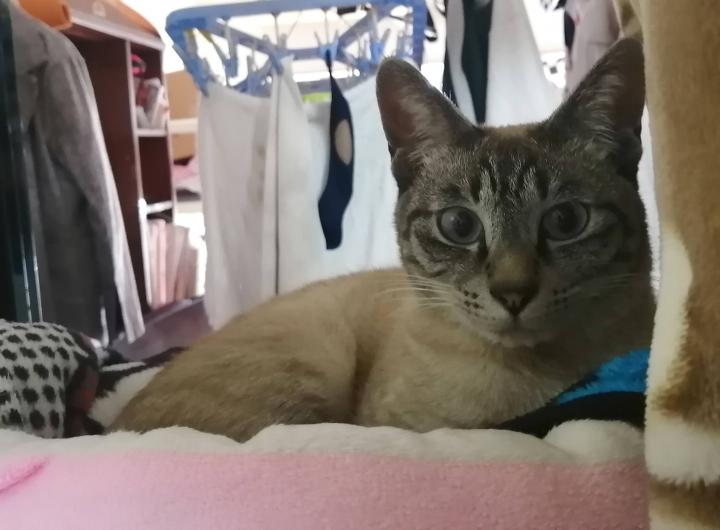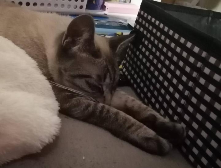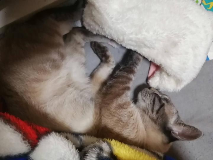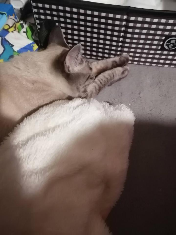 昨日の夜は、友人が夜更かししていたので、友人の足元で寝ていたそうです(笑)