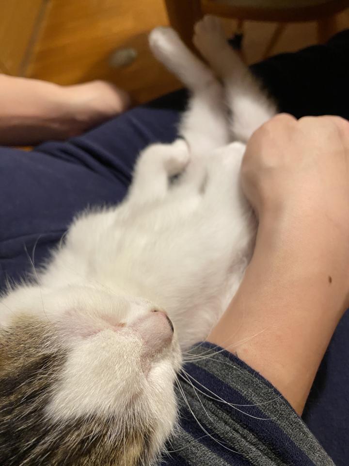 撫でても逃げず、肉球を触っていたらウトウト寝てました。