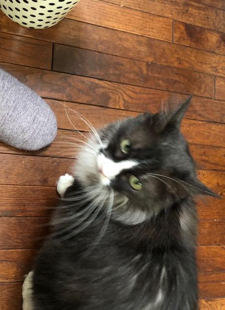 クルクルと丸めてたたんで床に置いといたら、これをボールのおもちゃのように追いかけ回して遊んでます