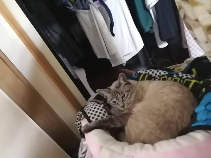 シャルルはケージ上猫ベッドで まーーるくなって寝ておりました(笑)