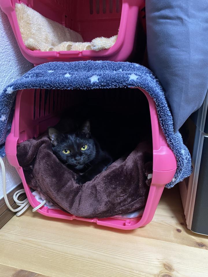 花子は 寒いとアンカいりキャリーの中で寝ています