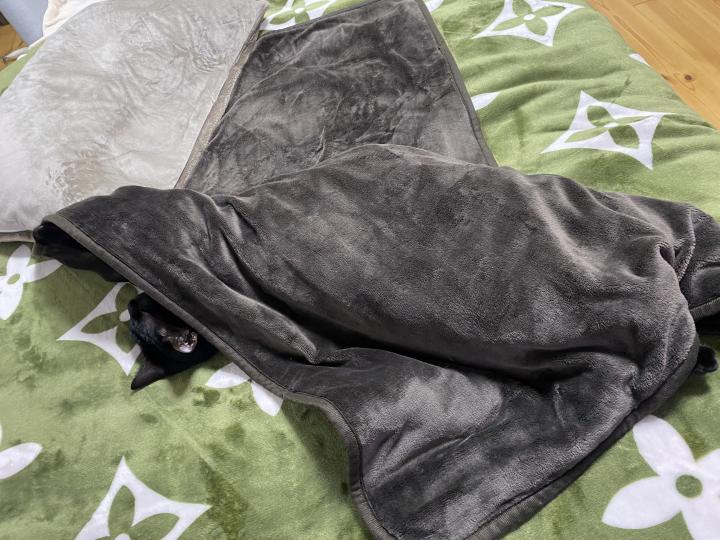 カン太は まんま電気毛布に絡まってます🤣