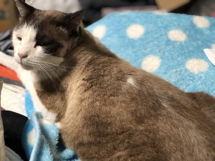 薬のパウチのようなものを白が欲しがったら「ごめんね、これ、オヤツじゃないの。治療が終わったらオヤツあげるから、いい子に頑張ってね」と言われた。